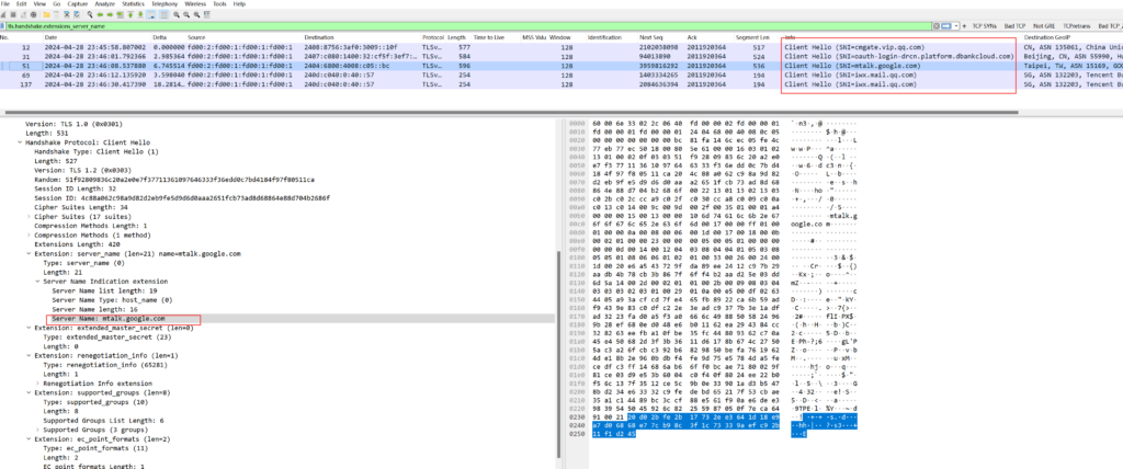 虽然HTTPS加密了报文,但在TLS握手阶段,至少是会展示Server_name的,可以通过这个字段来判断哪条TLS流对应请求哪个域名,过滤规则可以是: